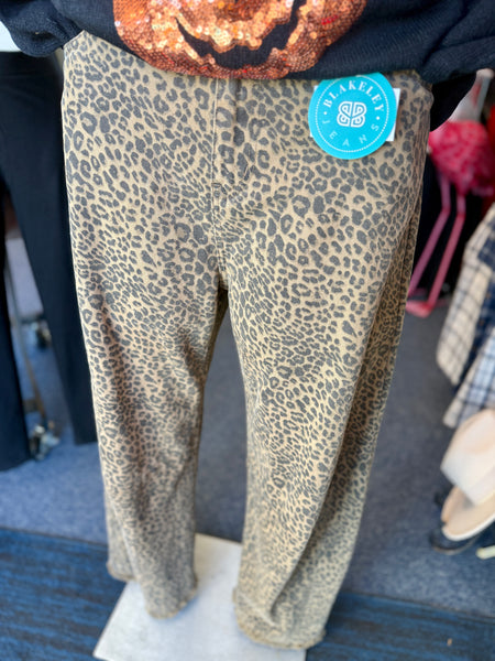 These trendy cheetah print barrel jeans are IT! Fits the body perfectly! Sleek high waisted fit design, and non stretchy denim that fits like a dream! Wide-legs that slightly taper at the ankle. Darted knees keep the "flare out" form. Features beltloops, detailed seams on sides and a raw hem that can be rolled up or down.