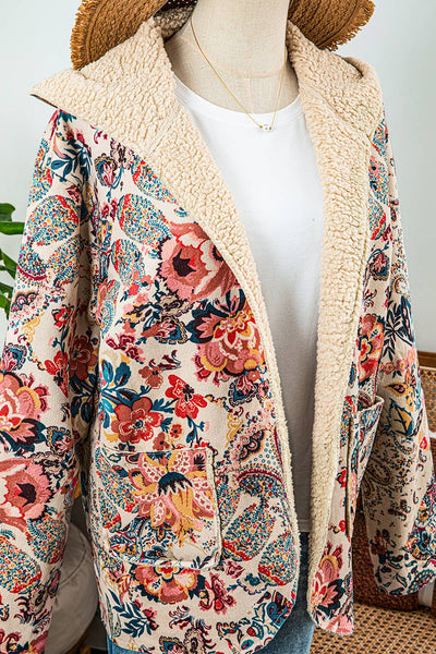 Vintage Paisley Floral Sherpa Lined Hooded Jacket